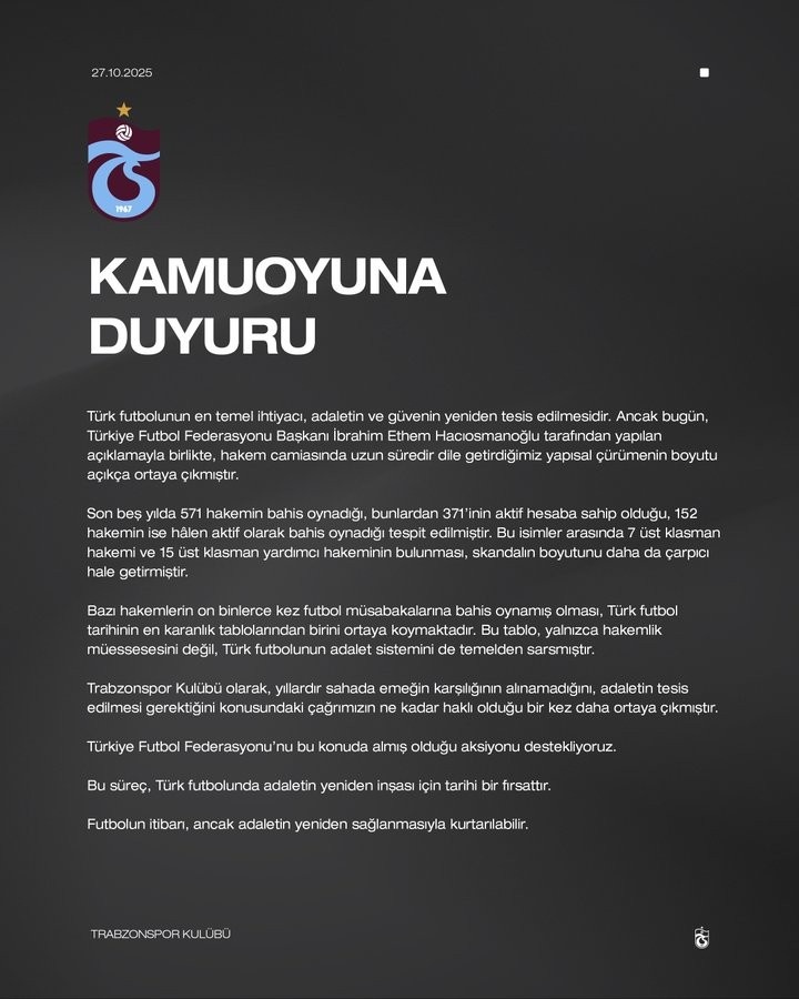 土超特拉布宗炮轰:过去五年571名裁判参与博彩,152人仍在参与