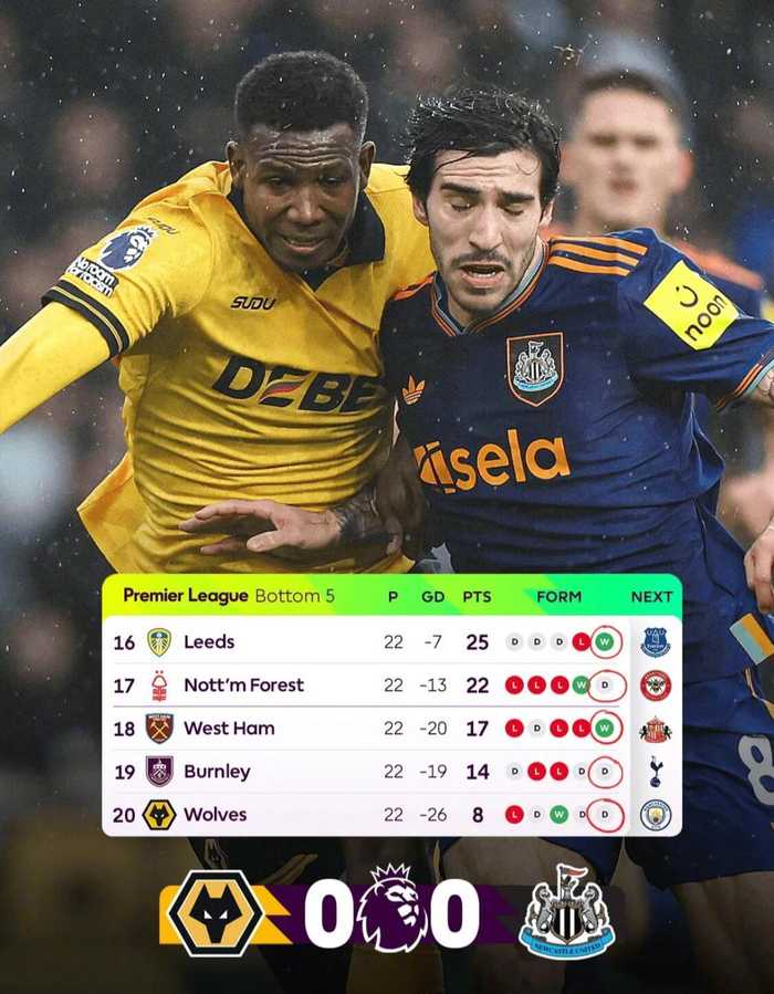 狼队0-0纽卡斯尔联,连续5场不败下轮战曼城