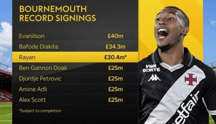 伯恩茅斯3040万镑签19岁中锋拉扬,队史引援花费榜第三